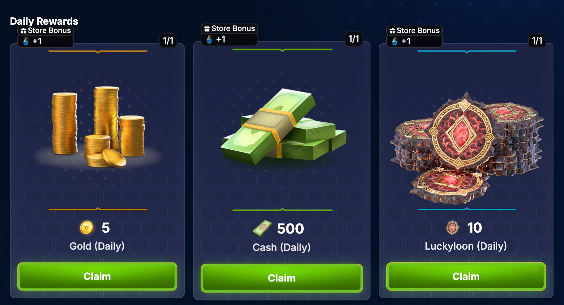 - Günlük Ödüller alanına kadar aşağı kaydırın ve mevcut tüm ödülleri toplayın.