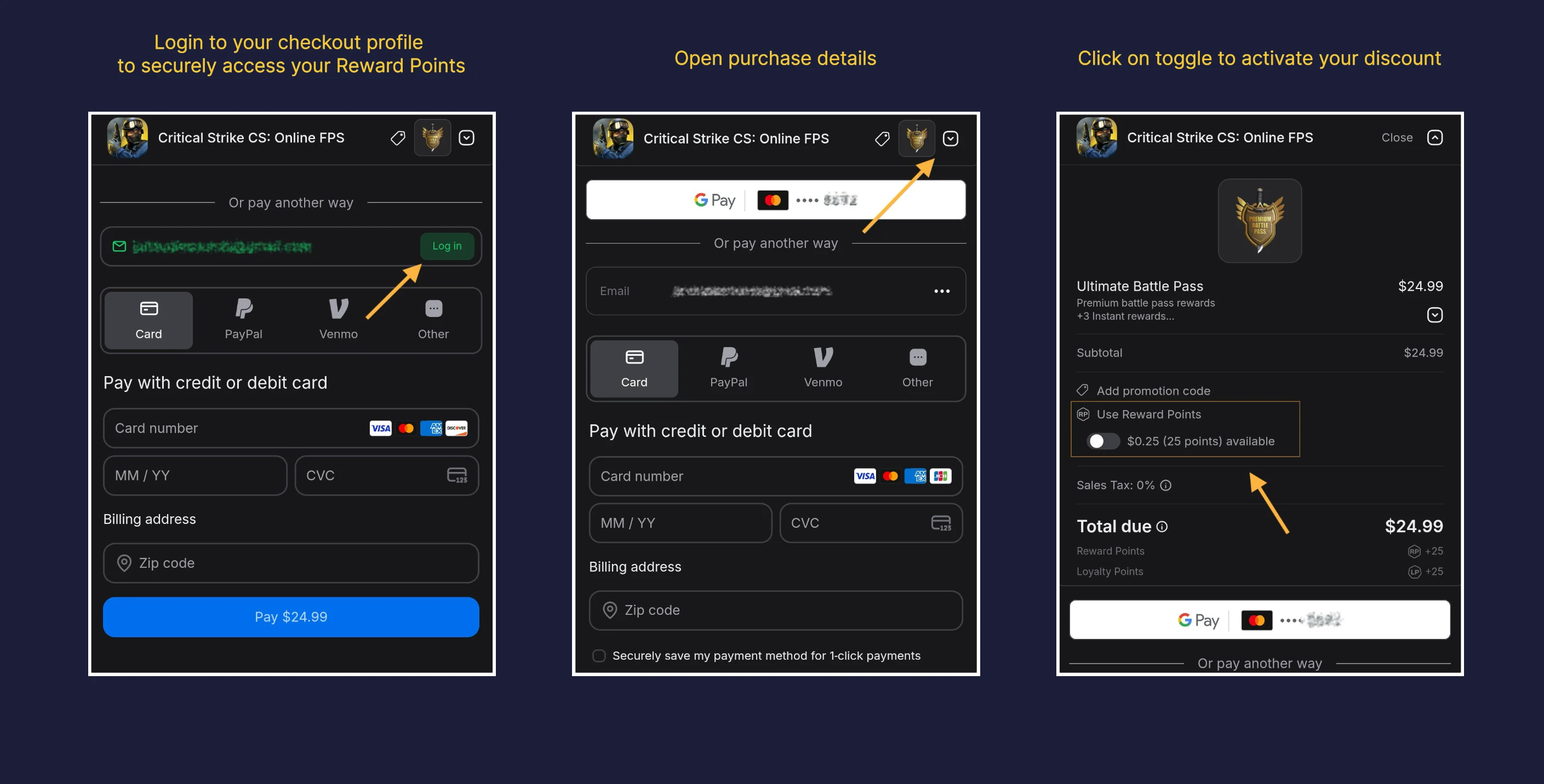 Ödül Puanları (RP), Critical Strike Hub'da gerçek para ile alışveriş yaptığınızda kazandığınız özel puanlardır. Bu puanları gelecekteki alışverişlerinizde indirim almak için kullanabilirsiniz.