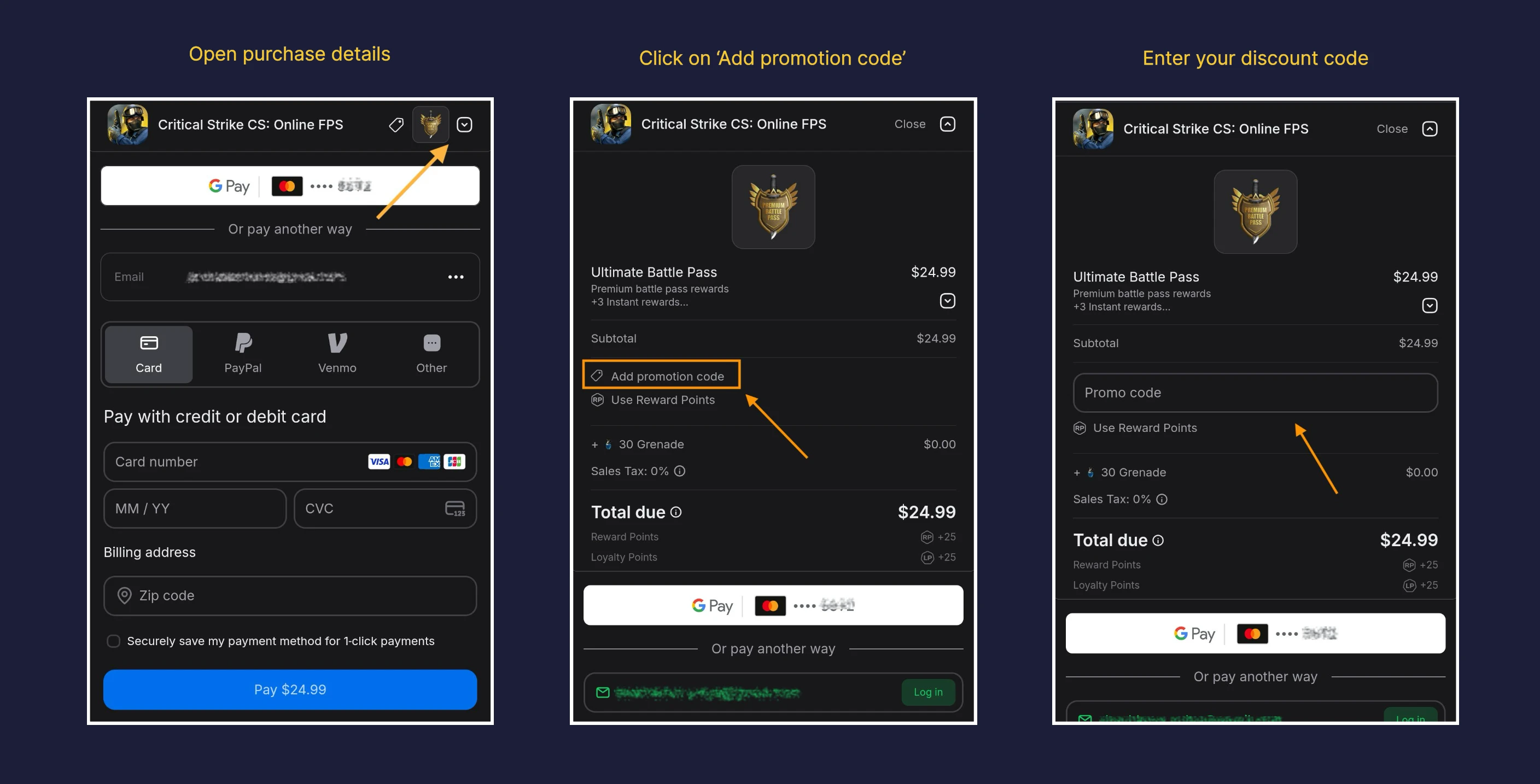 - Giriş yapın ve önceki satın alımlarınızda kullandığınız e-posta ile ödeme profilinize giriş yapın.